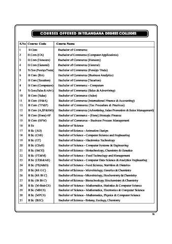 COU RSES OFF ERED IN T ELANGANA DEGREE COLLEGES