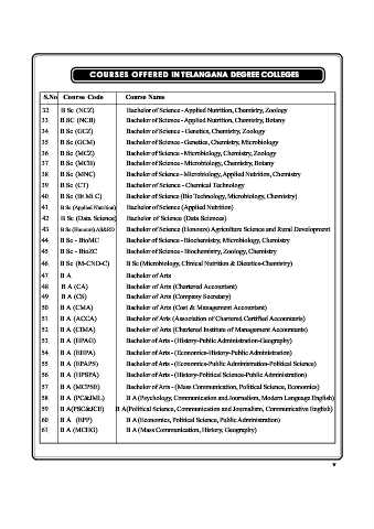 COU RSES OFF ERED IN T ELANGANA DEGREE COLLEGES