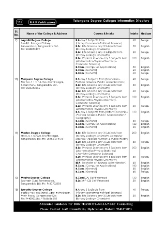 10) Manjeera Degree College B.A any 3 Subjects from (Economics- 40 Telugu