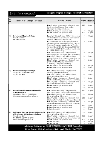 9) Karimala Sai Degree College B.Sc. Life Science any 3 Subjects from 45 Telugu