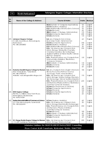 61) K.V. Ranga Reddy Degree College for Women B.Sc. Life Science any 3 Subjects from 250 English
