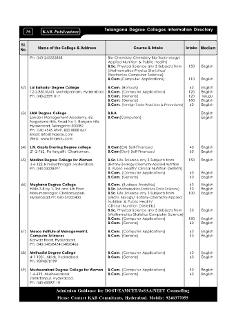 69) Musheerabad Degree College for Women B.Com. (Computer Applications) 50 English