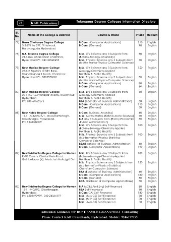 83) New Siddhartha Degree College for Women B.A(MC&J,Psy&Eng) Self-Financed 60 English